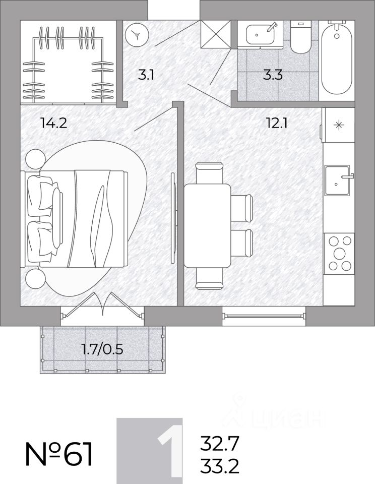 Общая площадь33,2 м²