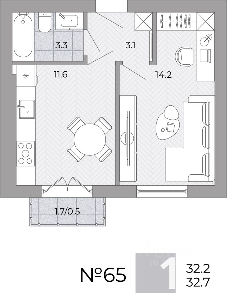 Общая площадь32,7 м²