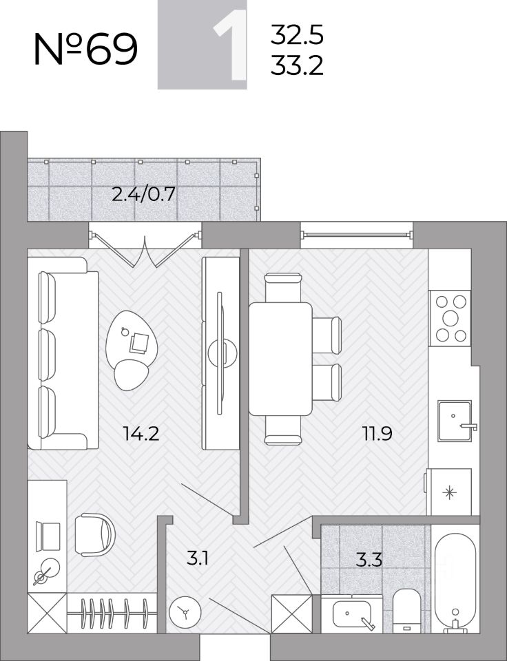 Общая площадь33,2 м²