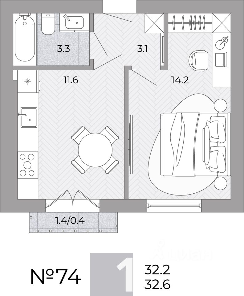 Жилая площадь14,2 м²