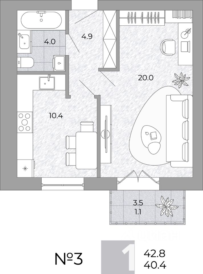 Общая площадь40,4 м²