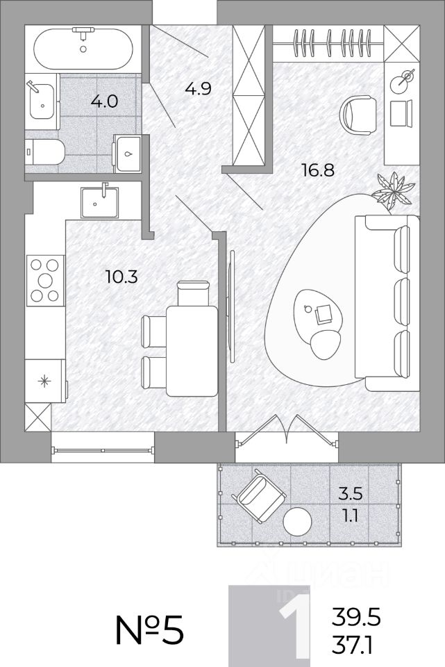 Общая площадь37,1 м²