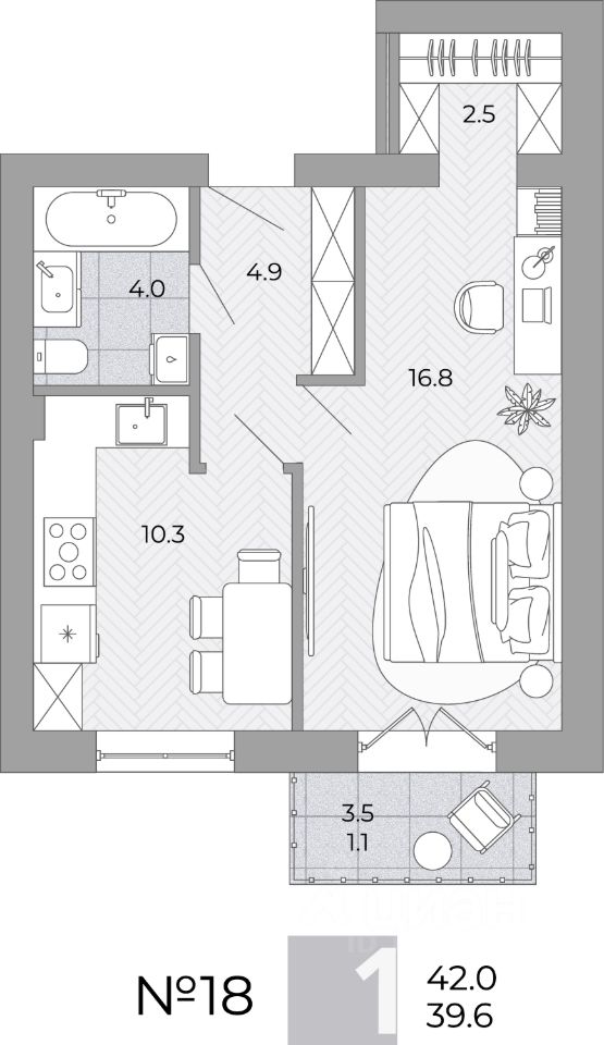 Общая площадь39,6 м²
