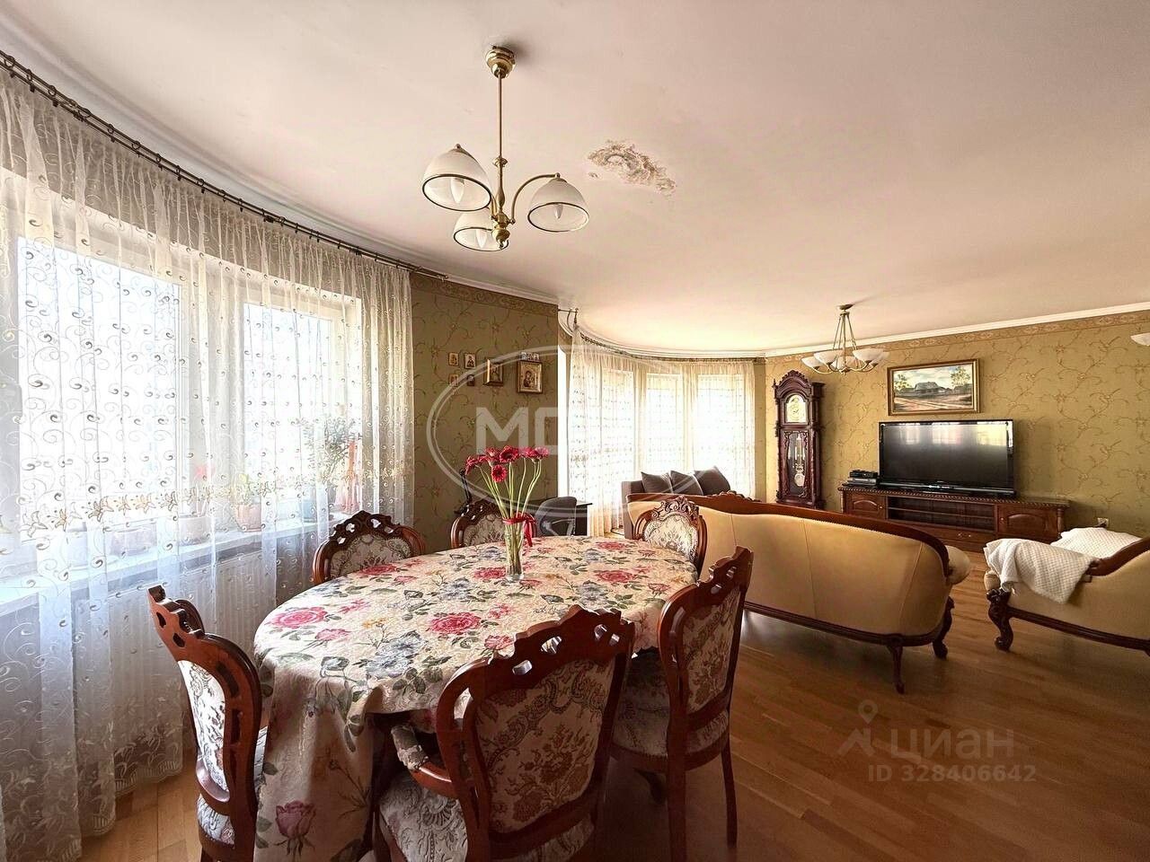 Теплые полы в коридоре, кухне, санузле, в гостиной и спальне паркет.