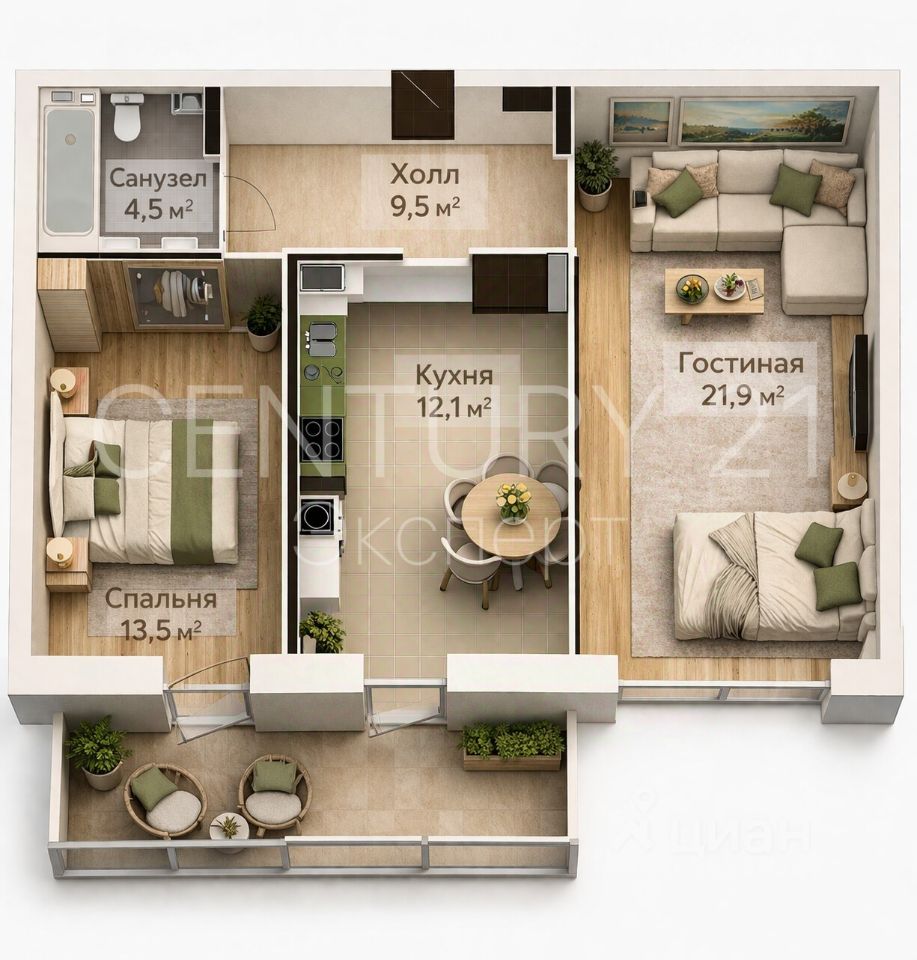 Планировка — один из самых сильных аргументов этого предложения. Комнаты не смежные, они разделены кухней, а значит квартира будет комфортна и для семьи с ребёнком, и для пары, и для тех, кто хочет организовать отдельную спальню и кабинет. Просторная прихожая создаёт ощущение объёма уже с порога, большой санузел добавляет удобства в повседневной жизни, а две большие смежные панорамные видовые лоджии становятся настоящей изюминкой квартиры Это редкое преимущество, которое даёт много света, красивую глубину пространства и возможность создать дополнительную зону отдыха, кабинет, зимний сад или объединить лоджии в одно эффектное пространство. Мебель и техника остаются частично!