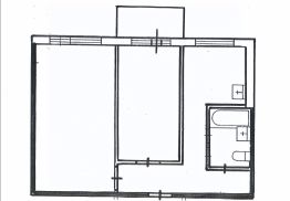Общая площадь квартиры составляет 45.40 кв.м., из которых 5.7 кв.м. приходится на кухню.