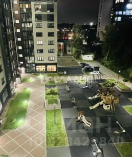 Двор дома без машин с детской и спортивной площадками.