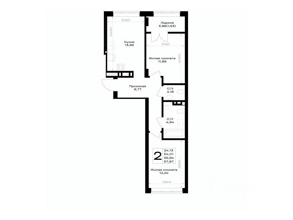 Общая площадь55,94 м²