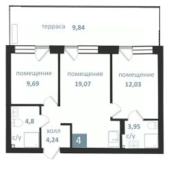 Продаются 3-комнатные апартаменты в строящемся доме (Дом 1), срок сдачи: II-кв. 2027, общей площадью 63.62 кв.м., на 1 этаже. Апарт-комплекс "Престиж парк" от ГК "ТВН"