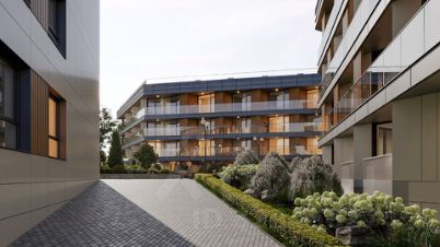 Четырехэтажные монолитно-каркасные дома выполнены в сдержанных тонах. Архитектурное решение Апарт-комплекса сочетает в себе современные элементы и классический стиль.