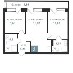 Продаются 3-комнатные апартаменты в строящемся доме (Дом 1), срок сдачи: II-кв. 2027, общей площадью 63.62 кв.м., на 2 этаже. Апарт-комплекс "Престиж парк" от ГК "ТВН"