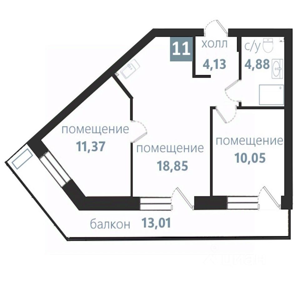 Продаются 3-комнатные апартаменты в строящемся доме (Дом 1), срок сдачи: II-кв. 2027, общей площадью 62.29 кв.м., на 2 этаже. Апарт-комплекс "Престиж парк" от ГК "ТВН"