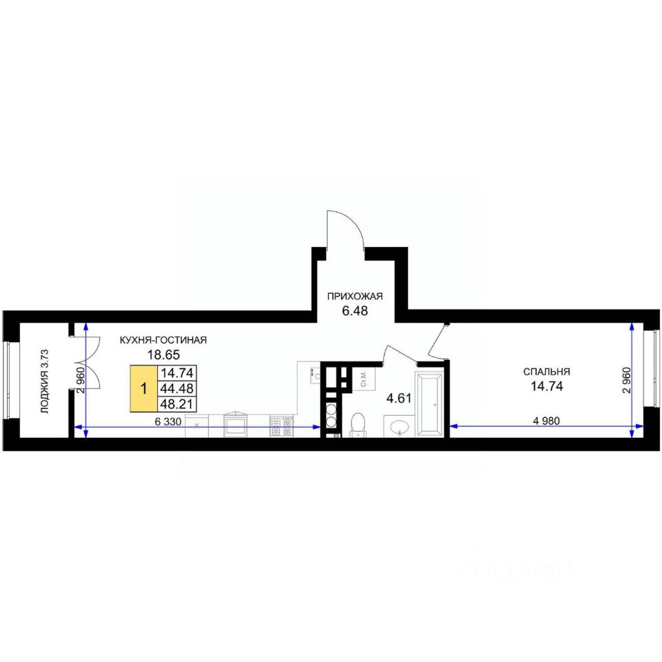 Продается 1-комн. квартира, площадью 46.35 м2. Возможен вариант покупки с использованием ипотечных средств.
