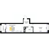 Жилая площадь 14.74 кв. м, кухня 18.65 кв. м, ремонта нет, комнаты изолированные.