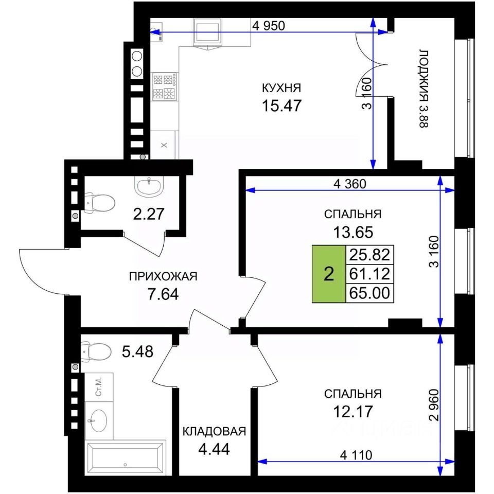 Жилая площадь 25.82 м2, кухня 15.47 кв. м, ремонта нет.