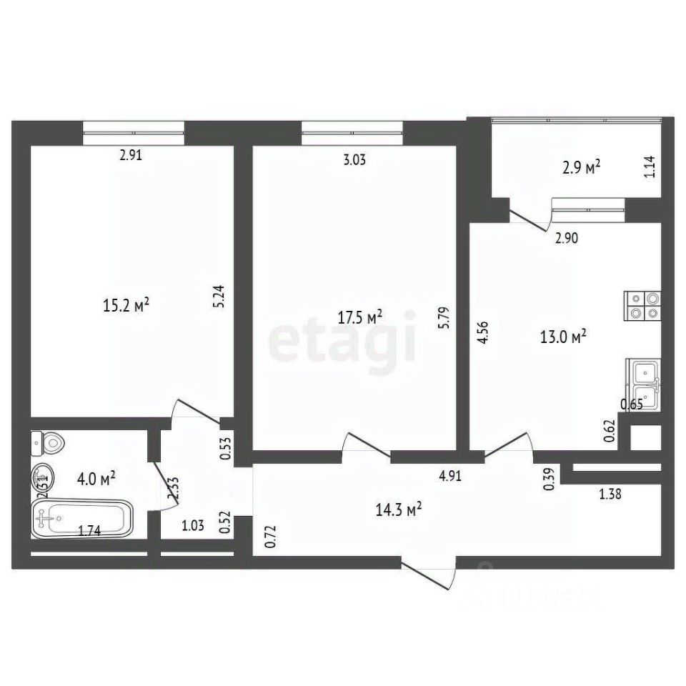 -лоджия 2,9 м2