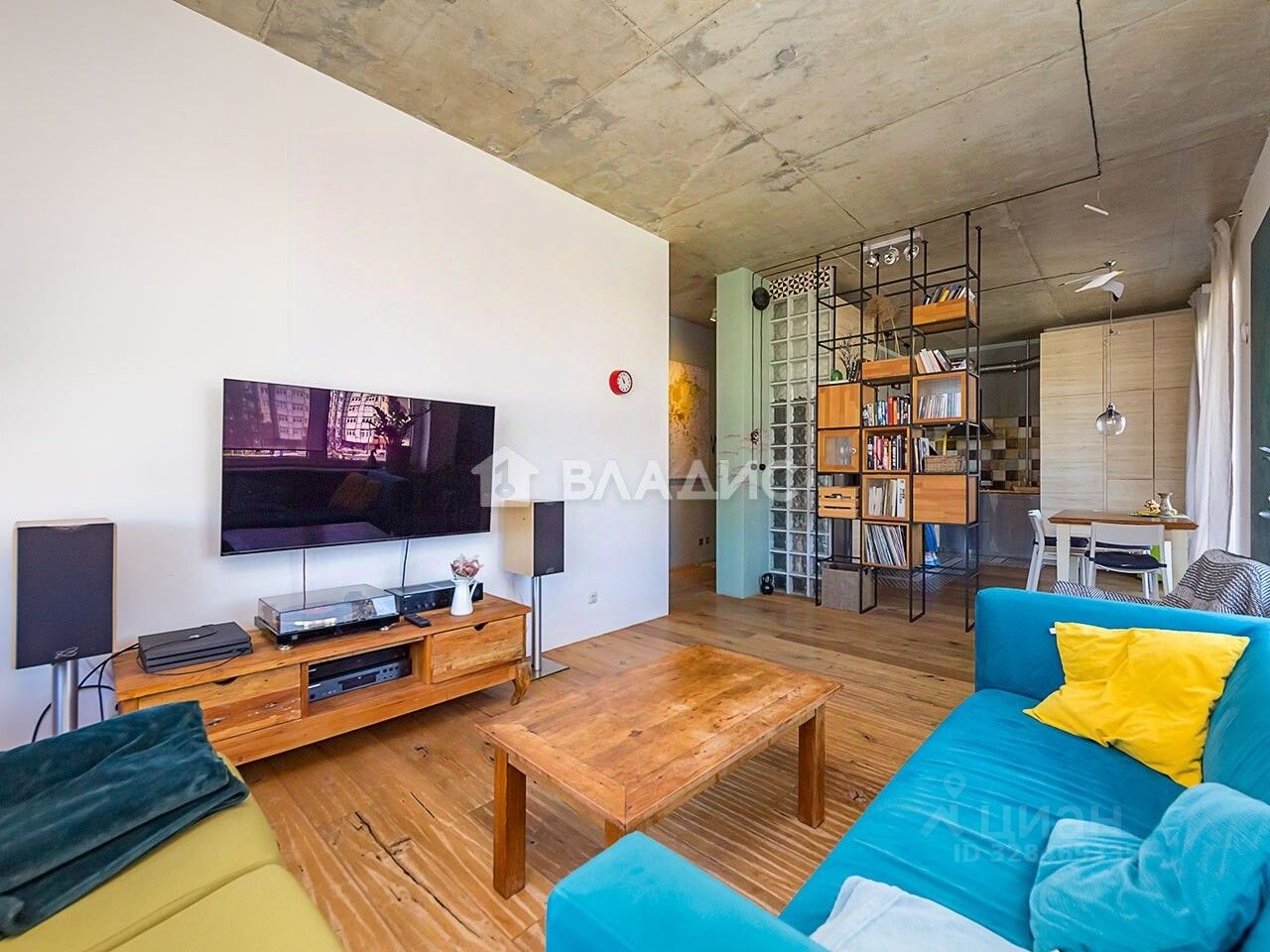 В гостиной есть новый телевизор Sony, игровая приставка PlayStation и музыкальная аппаратура. На полках можно найти коллекцию джазовых пластинок.