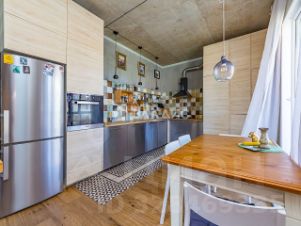 В квартире выполнен дизайнерский ремонт с использованием экологически чистых материалов. Встроенная кухня оснащена современной техникой.