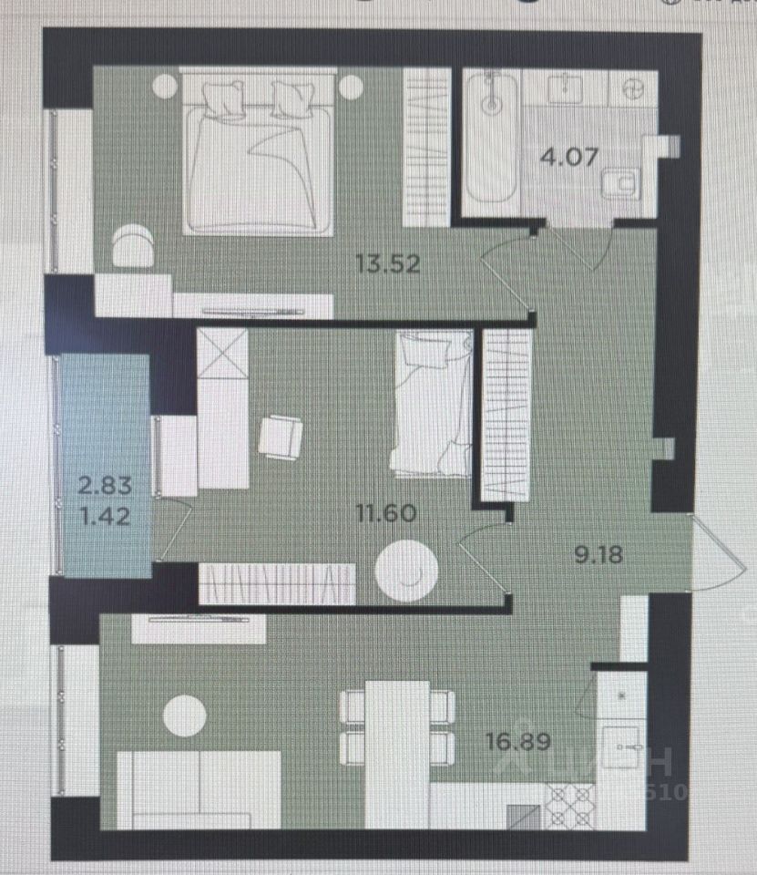 Продуманная планировка включает две уютные комнаты площадью 13,5 и 12 кв.м, а также просторную кухню 17 кв.м, где легко организовать комфортное пространство под свои нужды.