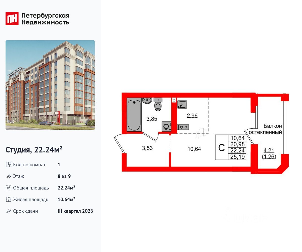 Продается уютная студия от застройщика в жилом комплексе "Консул" в Ленинградском районе.