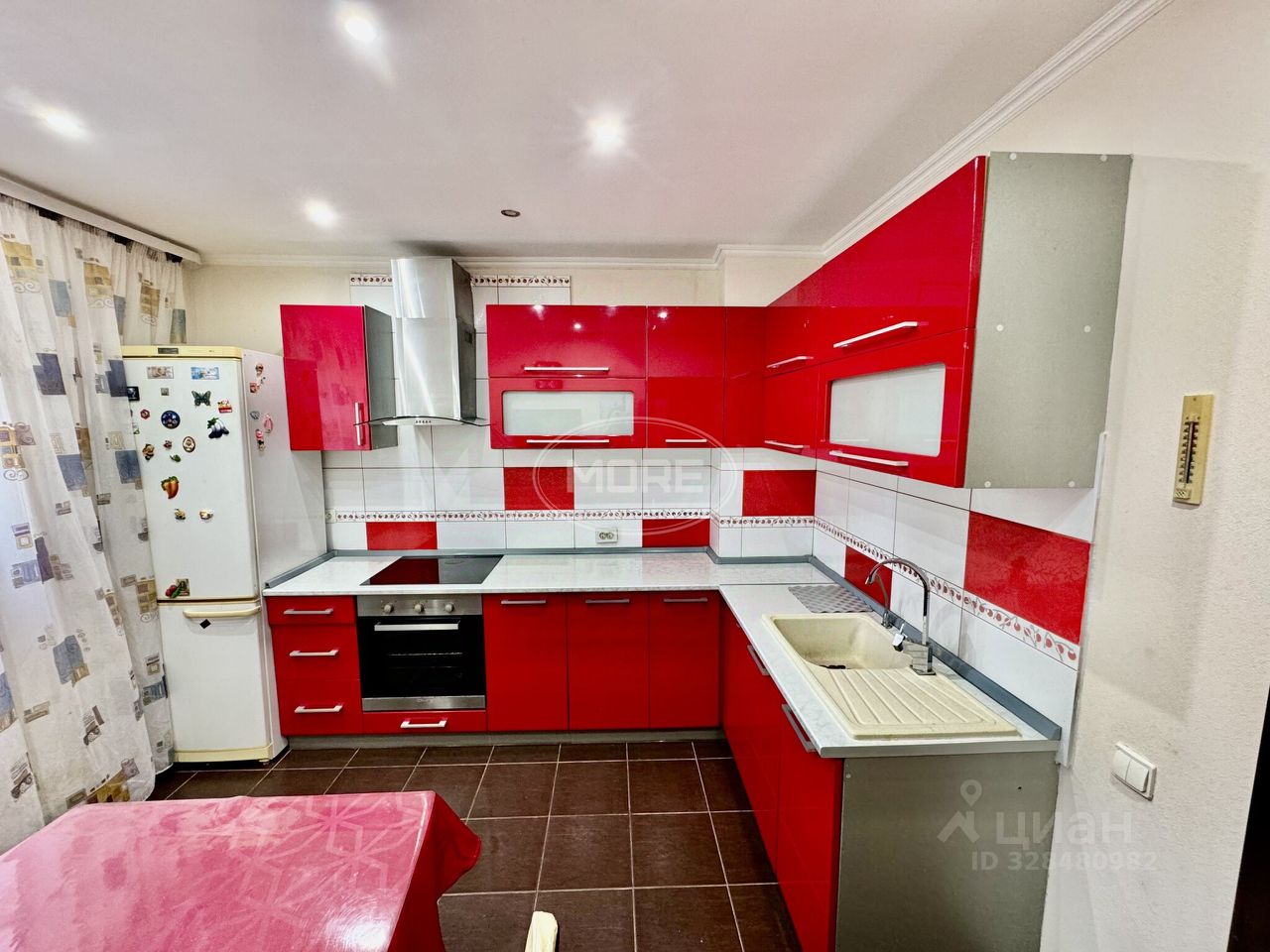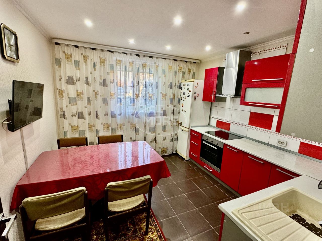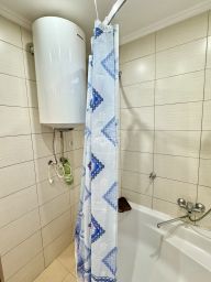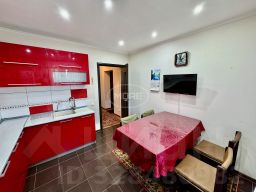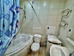 Санузел в плитке, с большой ванной, гардеробная в коридоре. Кухня с хорошим кухонным гарнитуром, варочная поверхность, духовка, вытяжка, все есть