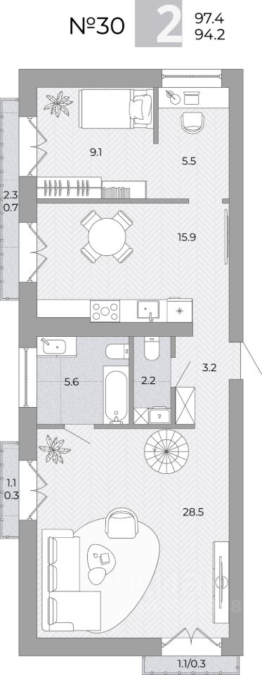 94,2 м²