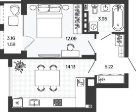 Площадь кухни14,1 м²