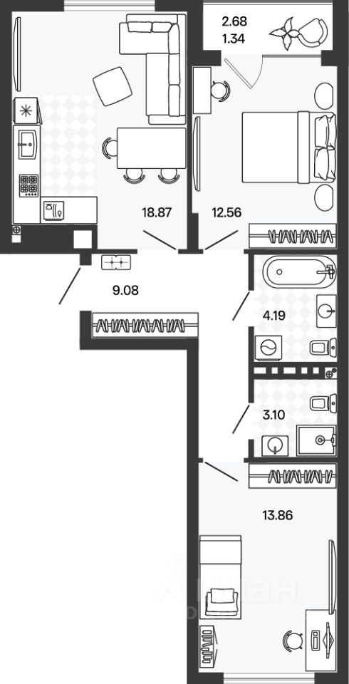 Площадь кухни18,9 м²