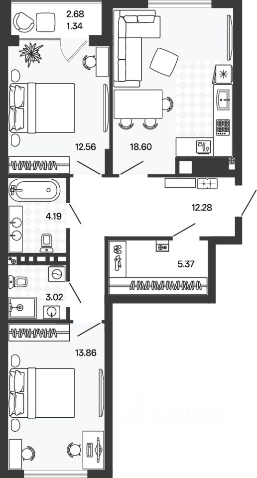 Площадь кухни18,6 м²