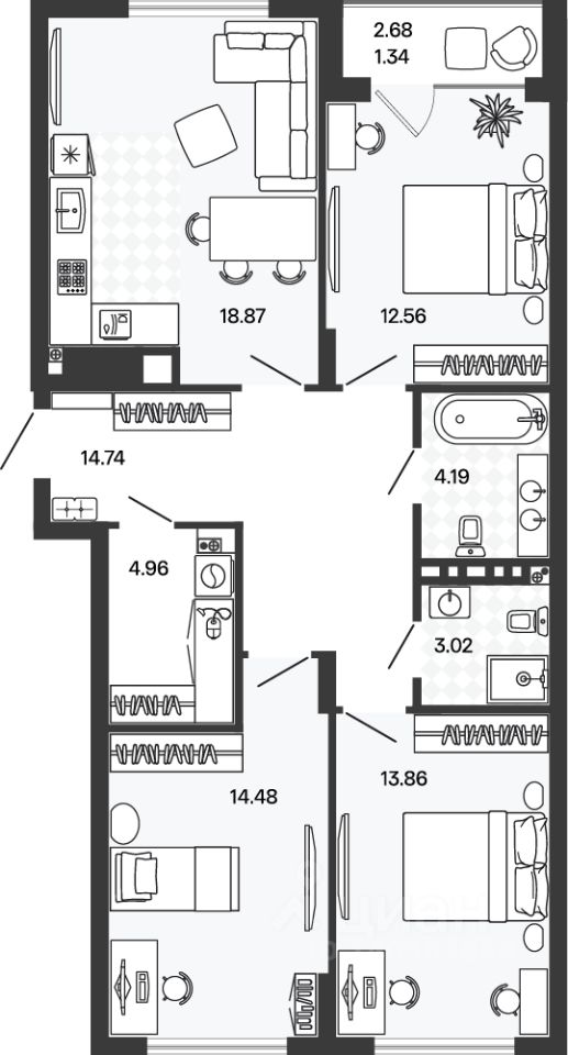 Общая площадь88,8 м²