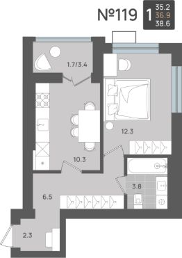 Продаётся 1-комнатная квартира в строящемся доме (Дом 2), срок сдачи: II-кв. 2027, общей площадью 36.9 кв.м., на 1 этаже. Новый жилой комплекс от компании "Макрострой" расположен по адресу: Калининградская обл., г. Пионерский, ул. Рабочая.