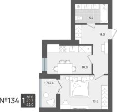 Продаётся 1-комнатная квартира в строящемся доме (Дом 2), срок сдачи: II-кв. 2027, общей площадью 40.3 кв.м., на 5 этаже. Новый жилой комплекс от компании "Макрострой" расположен по адресу: Калининградская обл., г. Пионерский, ул. Рабочая.