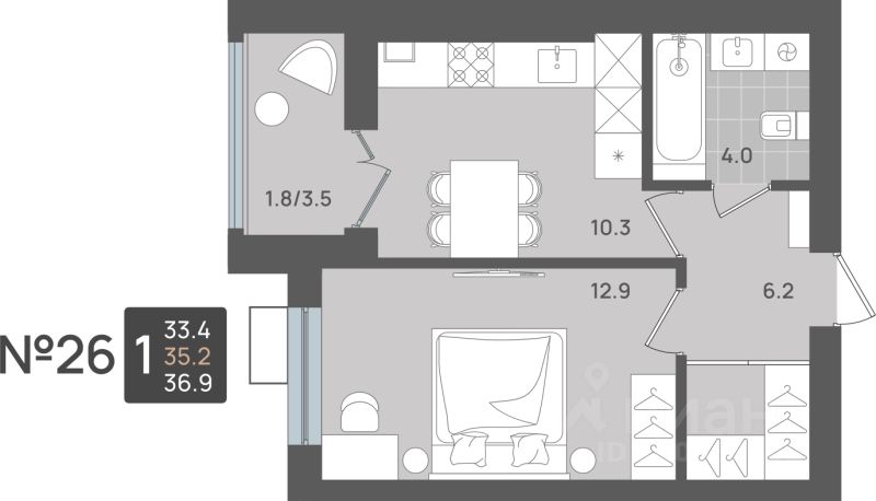 Продаётся 1-комнатная квартира в строящемся доме (Дом 2), срок сдачи: II-кв. 2027, общей площадью 35.1 кв.м., на 4 этаже. Новый жилой комплекс от компании "Макрострой" расположен по адресу: Калининградская обл., г. Пионерский, ул. Рабочая.