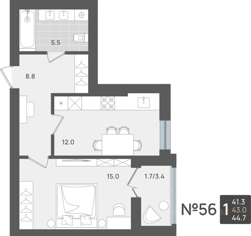 43 м²