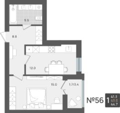 Продаётся 1-комнатная квартира в строящемся доме (Дом 2), срок сдачи: II-кв. 2027, общей площадью 43 кв.м., на 5 этаже. Новый жилой комплекс от компании "Макрострой" расположен по адресу: Калининградская обл., г. Пионерский, ул. Рабочая.