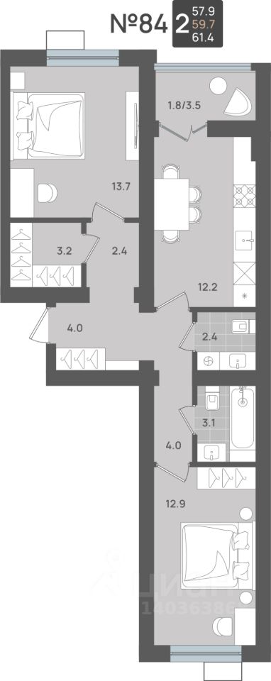59,7 м²