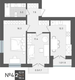Продаётся 2-комнатная квартира в строящемся доме (Дом 1), срок сдачи: II-кв. 2027, общей площадью 54.3 кв.м., на 4 этаже. Новый жилой комплекс от компании "Макрострой" расположен по адресу: Калининградская обл., г. Пионерский, ул. Рабочая.