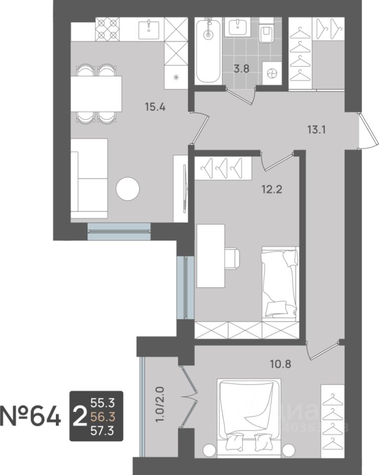56,3 м²