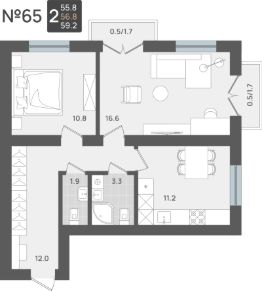 Продаётся 2-комнатная квартира в строящемся доме (Дом 1), срок сдачи: II-кв. 2027, общей площадью 56.8 кв.м., на 1 этаже. Новый жилой комплекс от компании "Макрострой" расположен по адресу: Калининградская обл., г. Пионерский, ул. Рабочая.