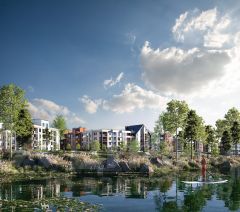 Экополис Виридиан — это квартал у озера в зелёной части города, где продуманы малоэтажные дома, закрытые дворы без машин и прогулочные зоны.