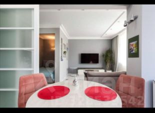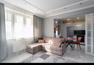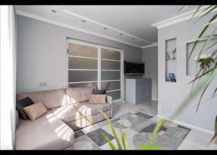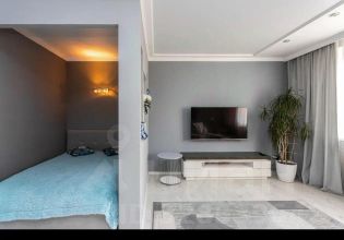 В квартире сделан хороший ремонт из качественных материалов . Зонирование выполнено умно: спальная зона отделена от гостиной, кухня-гостиная объединена, что создает ощущение простора. Большая гардеробная для хранения. Полностью совмещенный, чистый и светлый санузел с широкой столешницей и большим зеркалом .