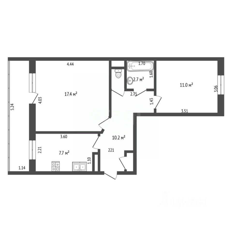 Общая площадь: 54 м²