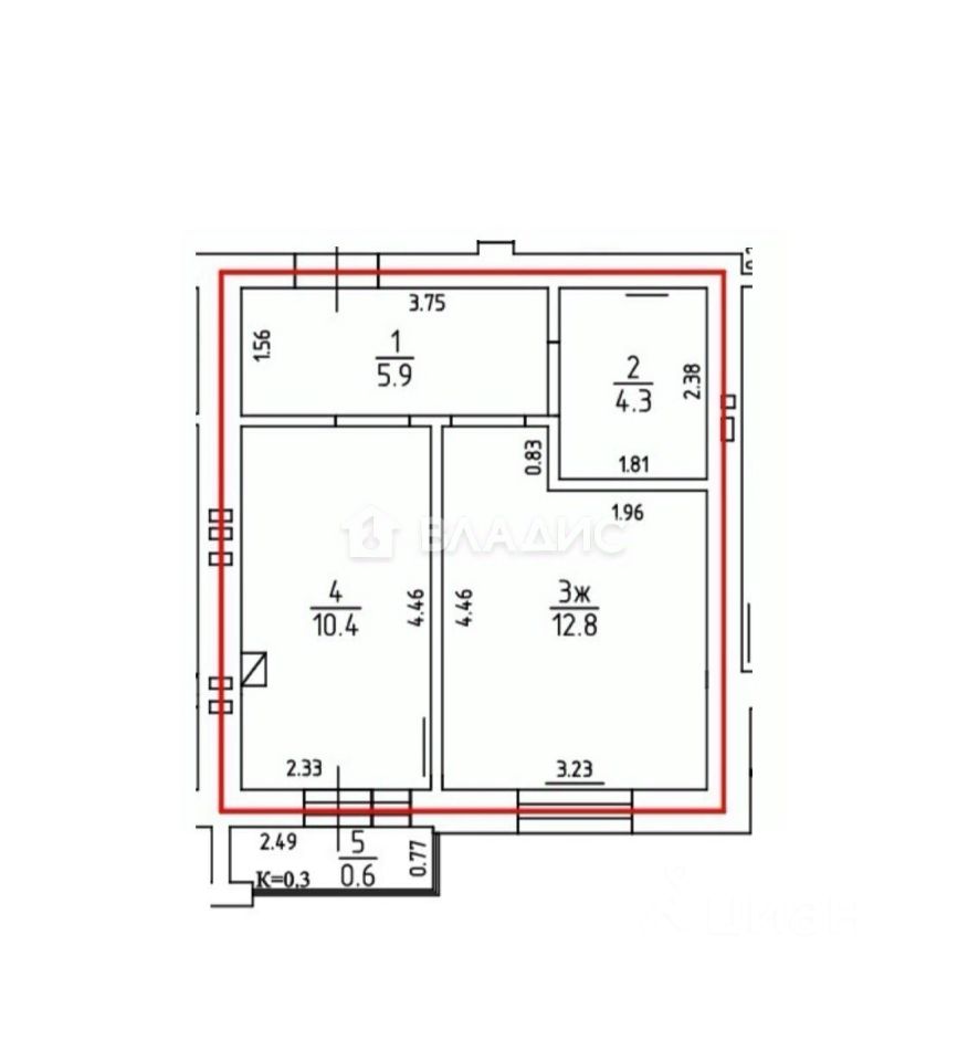 Общая площадь квартиры - 33.4 кв.м