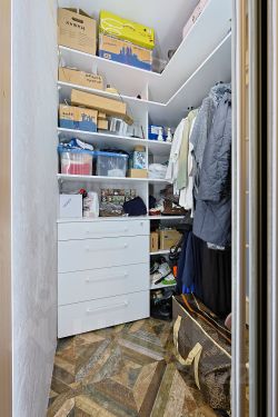 Есть большая и очень вместительная гардеробная от пола до потолка в коридоре.