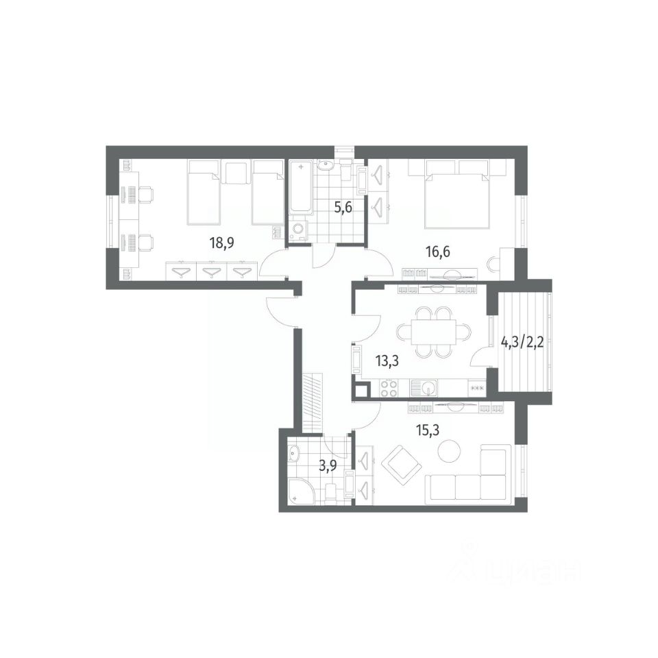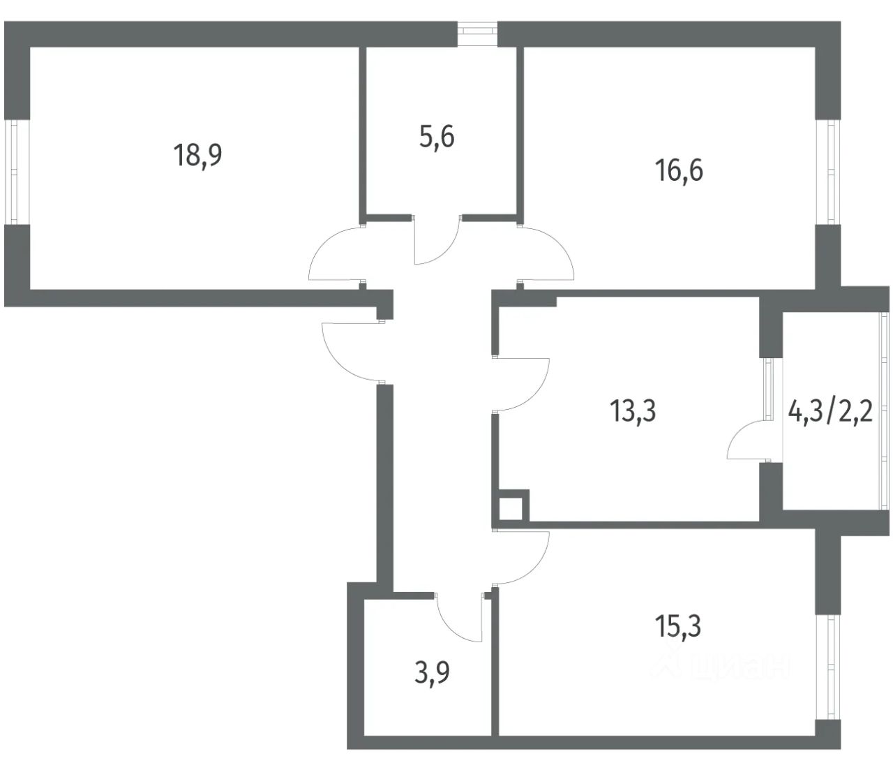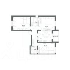 Продается квартира площадью 85.2 м² на 4 этаже 1 секции в Речной парк от компании ГК "ТРЕСТ". Площадь кухни 13.3 м².
