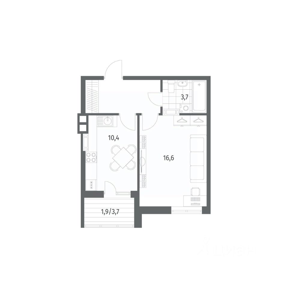 Продается квартира площадью 39.3 м² на 5 этаже 3 секции в Речной парк от компании ГК "ТРЕСТ". Площадь кухни 10.4 м².