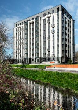 Район Юдиттен, парк Теодора Кроне за забором, озеро на территории. Закрытая территория, видеонаблюдение, детские площадки. К8 Комьюнити-центр: кафе, коворкинг, детская игровая, поликлиника, магазин. Удобный выезд к центру, Сельме и побережью Балтики. Первая очередь заселена — можно приехать и посмотреть вживую.
