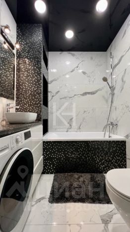 Совмещённый санузел: теплый пол, качественный керамогранит.