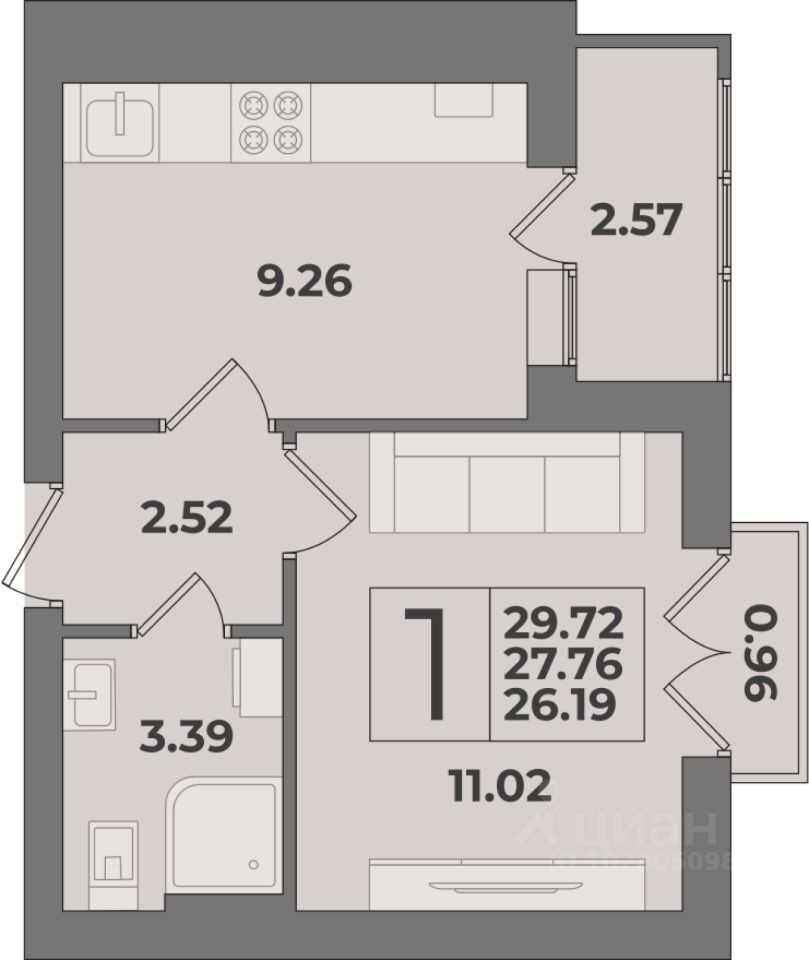 Общая площадь29,72 м²