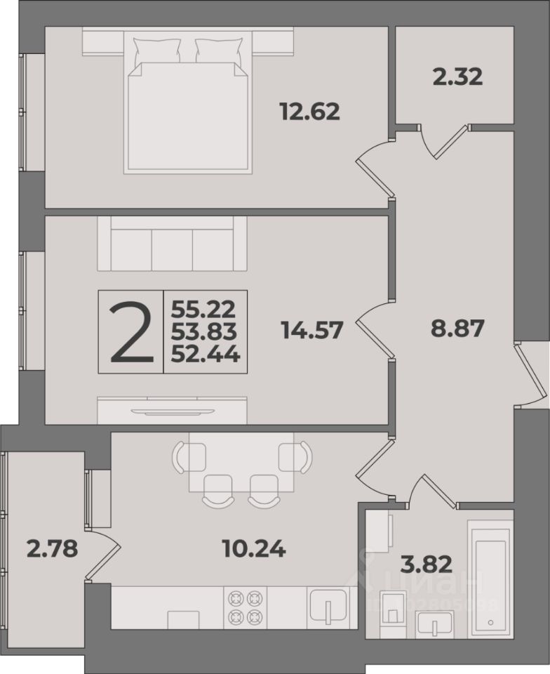 Общая площадь55,22 м²